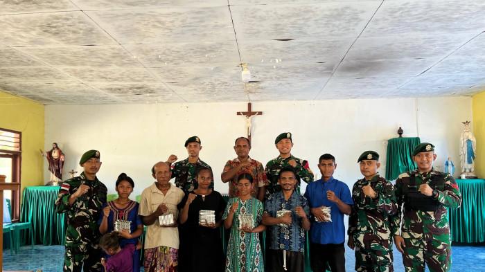 Seorang umat bernama Markus Nifu mengaku senang bisa menerima bantuan Alkitab dari Satgas Pamtas RI-RDTL Sektor Barat.