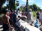 embangun tanggul penahan darurat yang terbuat dari bambu dimaksudkan guna mencegah longsor susulan akibat curah hujan